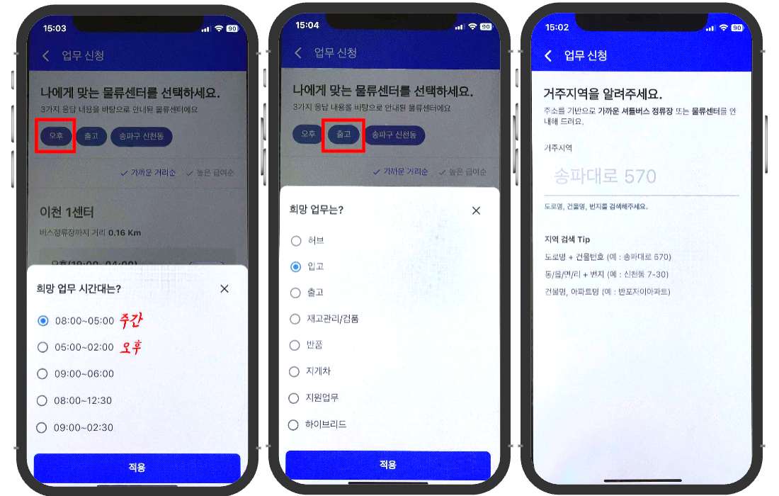 3. 물류센터 선택하기