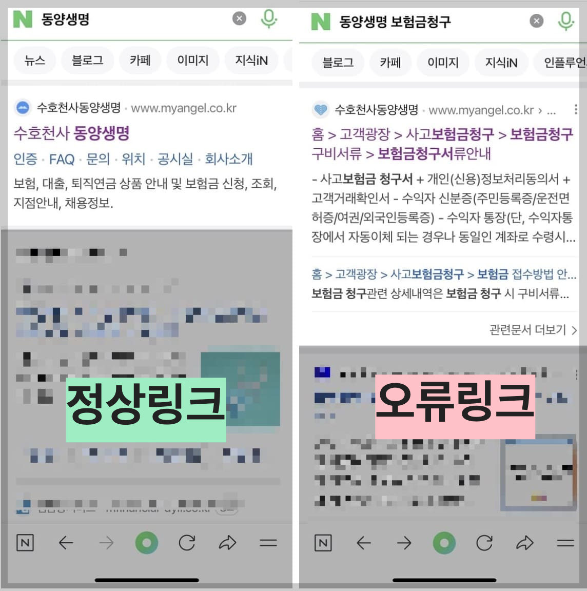 ❌ '동양생명 보험금청구' 라고 검색해서 첫번째로 나오는 링크는 오류페이지로 이동합니다.