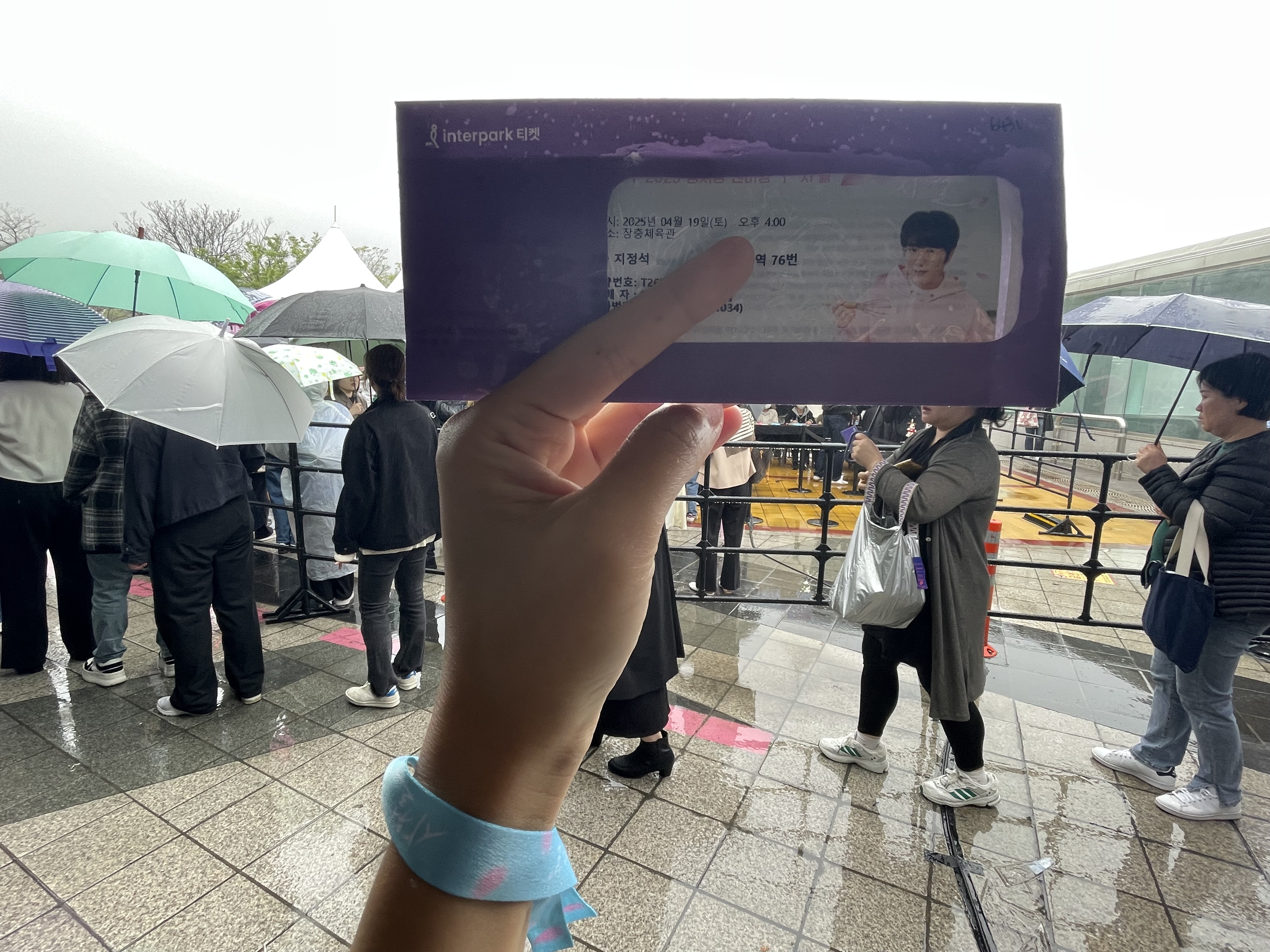 티켓예매내역, 신분증, 회원카드가 있어야 티켓을 받을 수 있습니다. 티켓 수령과 동시에 팔찌끈을 채워줍니다.