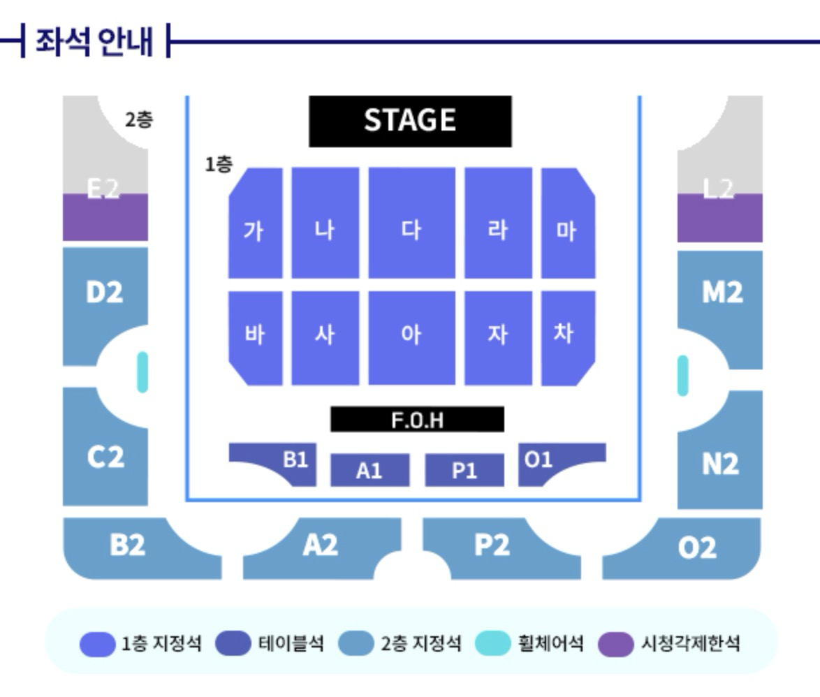 제가 앉은 곳은 2층 정면 P2 구역 5번째줄이었습니다.