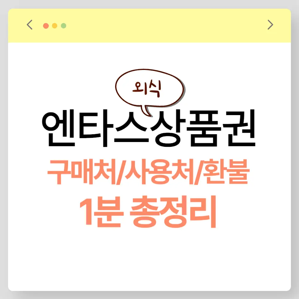 엔타스 상품권은 다양한 외식 브랜드에서 사용할 수 있는 실속 있는 선물 수단입니다. 다만 구매처가 제한적이고, 사용처와 환불 조건이 명확하므로 정확히 알고 활용하는 것이 중요합니다.