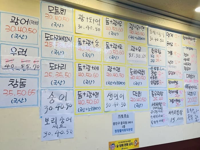 신선한 회를 저렴하게 먹을 수 있는 곳입니다. 대신 스끼다시 없이 회만 나오기 때문에 2차로 가도 좋습니다.