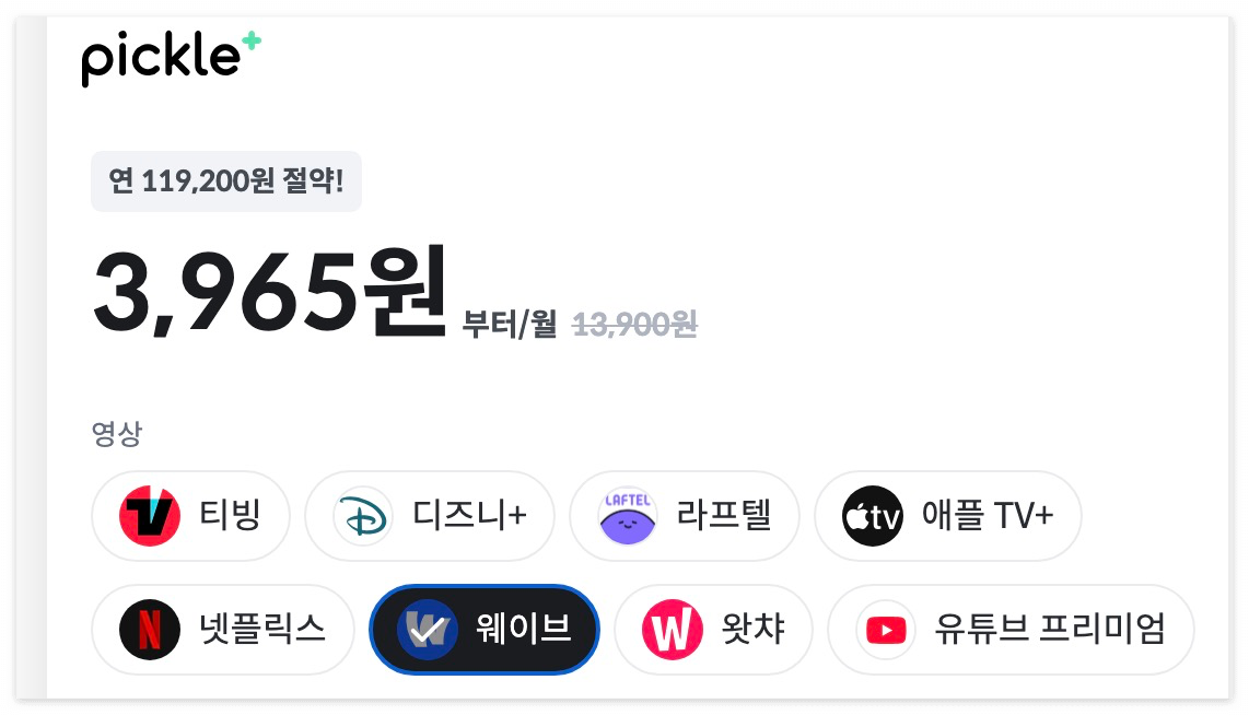 이렇게 웨이브를 월 3천 원대 수준으로, 안정적이면서 합법적으로 즐길 수 있습니다.
