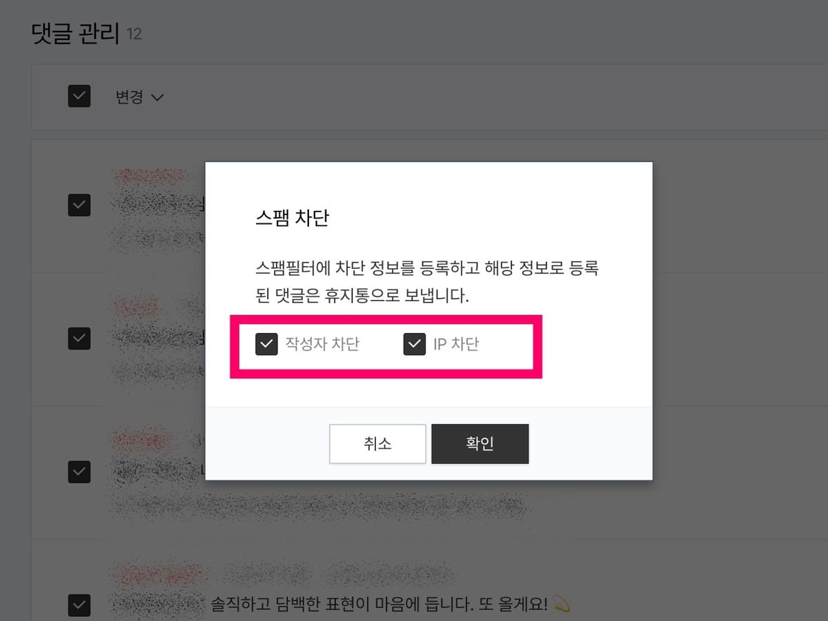 스팸 댓글 차단하는 방법