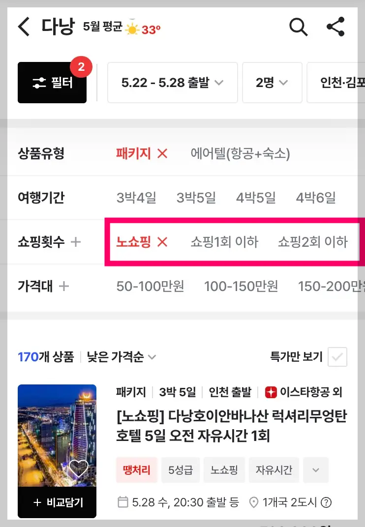 패키지여행 비교사이트 에서는 노쇼핑 상품이나 쇼핑횟수가 적은 상품만 찾아서 예약할 수 있습니다.